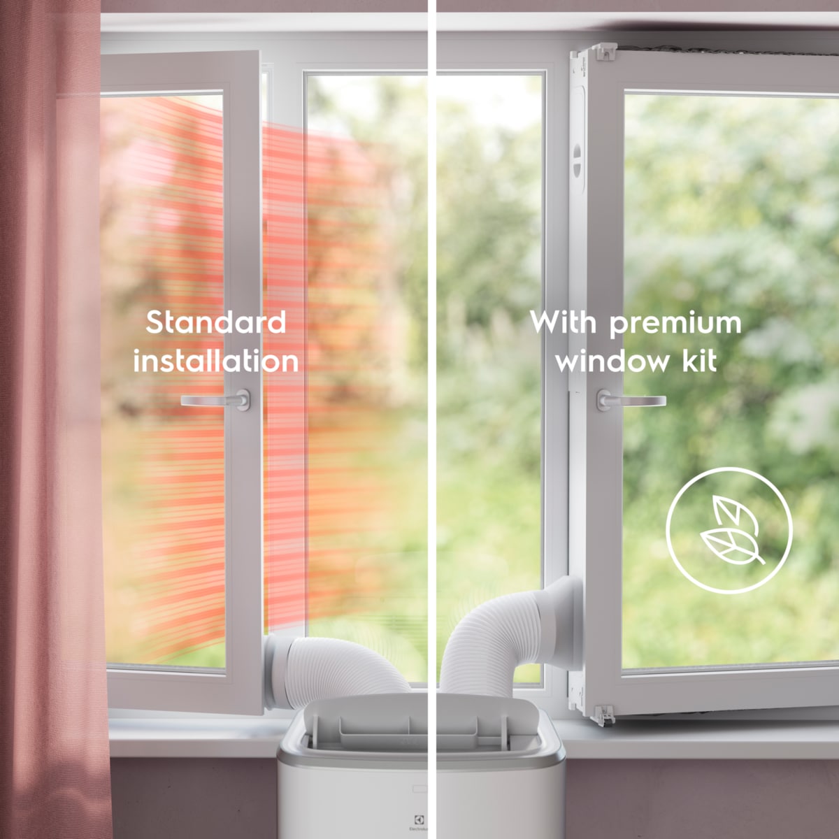 *Se la temperatura ambiente è 26 °C e quella impostata è 24 °C, con il kit finestra si raggiunge la temperatura impostata in 19 minuti, rispetto a 47 senza il kit. Test interno eseguito con Electrolux 9K, modello A, in una stanza di 14 m², con umidità relativa del 60% e temperatura esterna di 30°C.