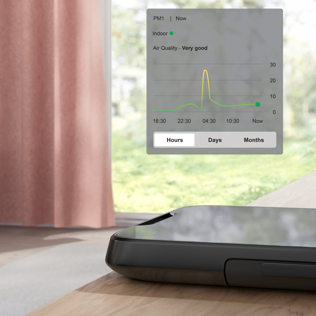 Monitora la qualità dell'aria a casa ovunque ti trovi con il purificatore d'aria Pure 500 Mono compatto, connesso. Il sistema di filtraggio a 4 fasi con uscita a spirale fa circolare l'aria purificata in modo uniforme in tutta la stanza.