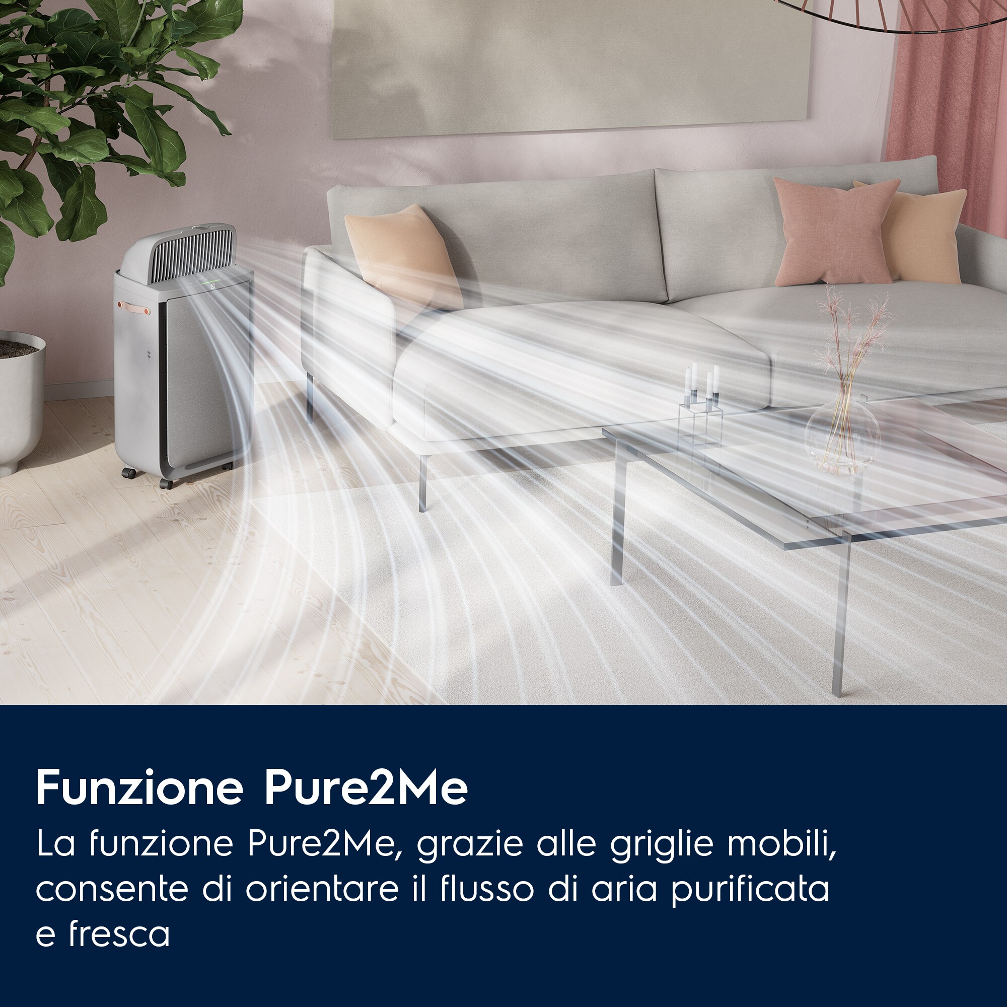 Il purificatore d'aria connesso Pure Multi 700 2 in 1 con ventola offre filtraggio avanzato. Il sistema di flusso dell'aria Pure2Me migliora la piacevole purificazione dell'aria con la capacità di dirigere l'aria filtrata verso di te come un fresco venticello.