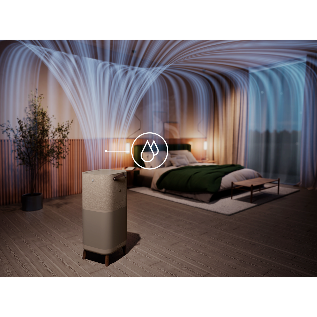 Il purificatore d'aria Pure 900 con umidificazione e ventilatore migliora la qualità dell'aria tutto l'anno. Aiuta in caso di allergie stagionali, inquinamento, aria secca invernale o calde notti estive. Purifica efficacemente l'aria di grandi spazi fino a 125 m²¹.