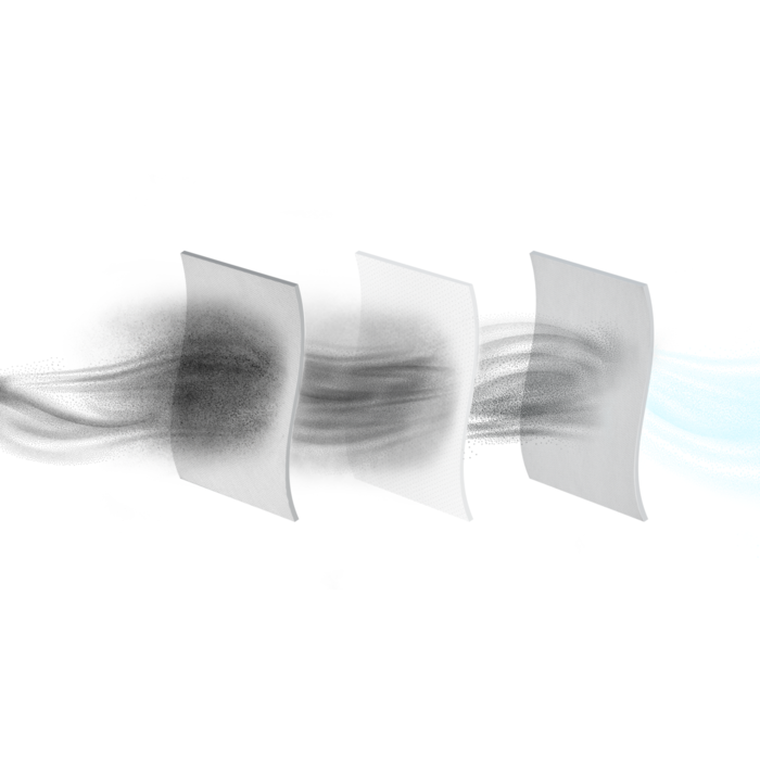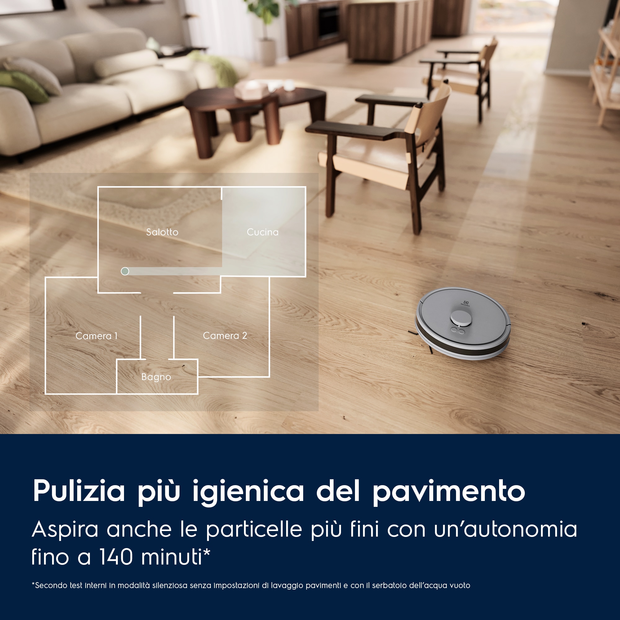 **In base a un test interno secondo la norma IEC 60312-1 su particelle fini, medie e grandi sia su tappeti che su pavimenti duri