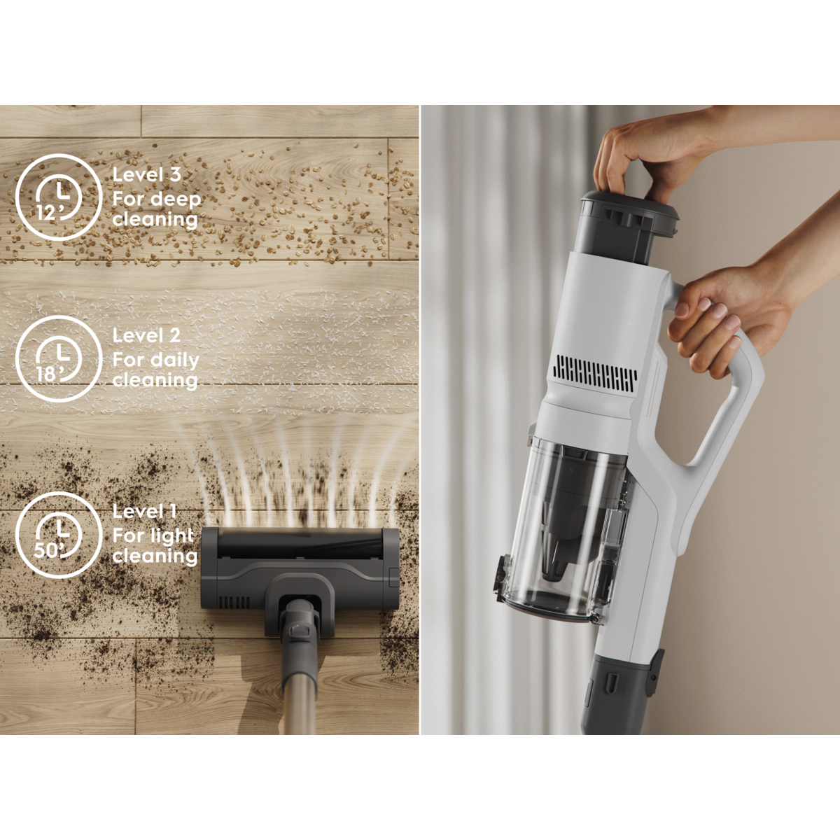 Le prestazioni potenti garantiscono fino al 99%* di raccolta della polvere sui pavimenti duri. La comodità del senza fili e il design leggero ti consentono di muoverti liberamente, mentre lo svuotamento one‑step rende la manutenzione rapida e semplice. Efficienza integrata, fluida e senza sforzo.