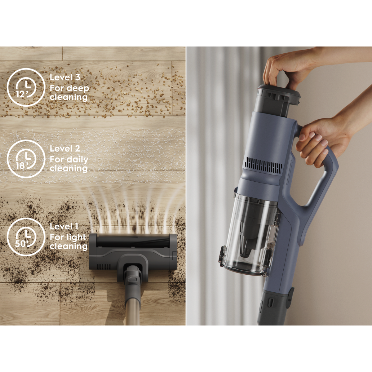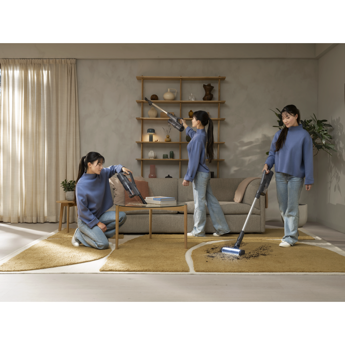Le prestazioni potenti assicurano fino al 99%* di raccolta della polvere sui pavimenti duri. La comodità del senza fili e il design leggero ti permettono di muoverti liberamente, mentre lo svuotamento con un solo gesto rende la manutenzione rapida e semplice. Efficienza integrata, fluida e senza complicazioni.