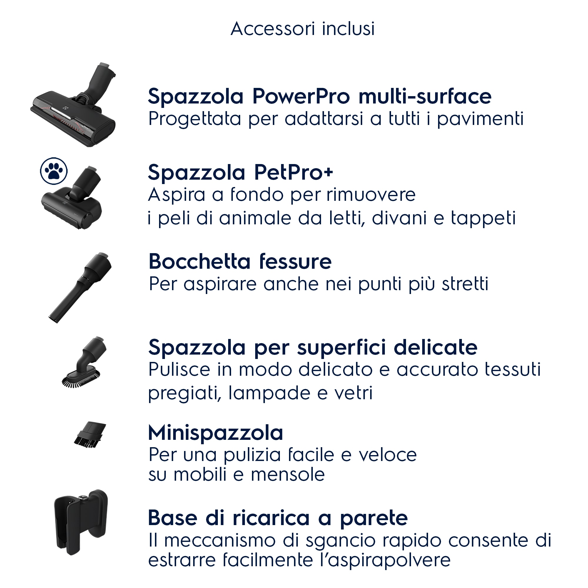 *Il peso totale è misurato su una scopa ricaricabile montata integralmente con la bochetta multi superficie PowerPro.
