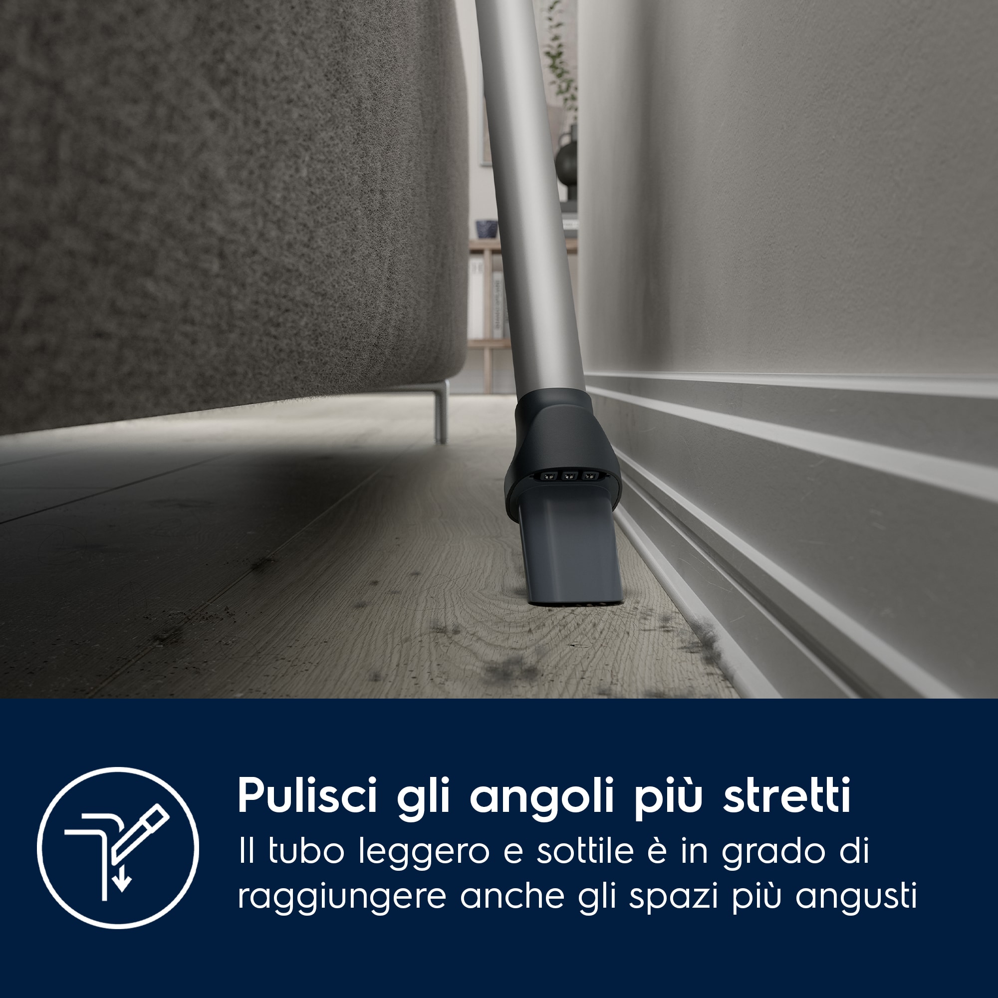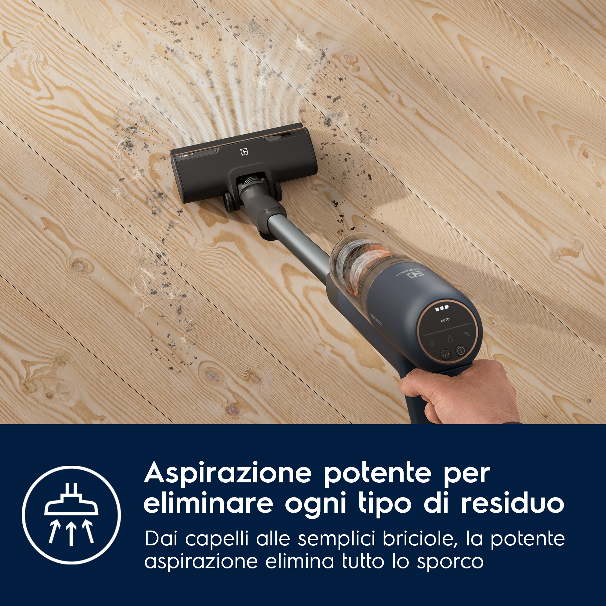 Questo aspirapolvere senza fili Electrolux è uno dei nostri aspirapolvere più efficienti che consente di risparmiare fino al 47% di energia* prolungando l'autonomia con la modalità automatica. L'aspirapolvere, la bocchetta principale e il supporto di ricarica sono realizzati con fino al 60% di plastica riciclata da tutte le plastiche utilizzate** La gamma di aspiratori senza filo Electrolux EcoLine è selezionata in base alla funzione Auto Mode che può aiutare i consumatori a risparmiare energia durante l'uso.