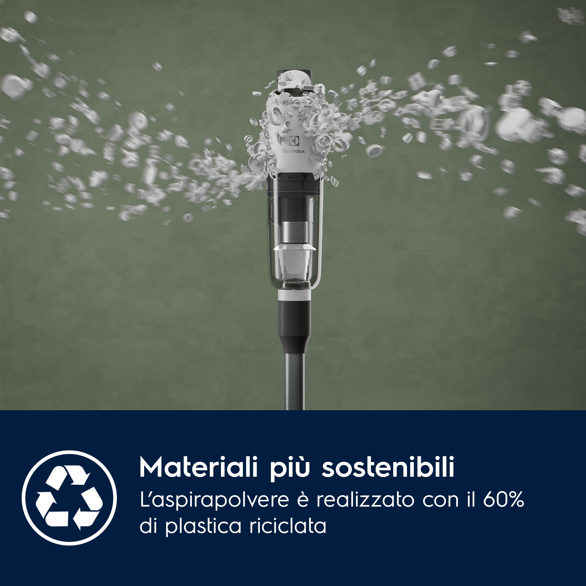 Scopri un potente e adattabile aspirapolvere con una maggiore consapevolezza ambientale, fino al 60% della plastica usata è riciclata.