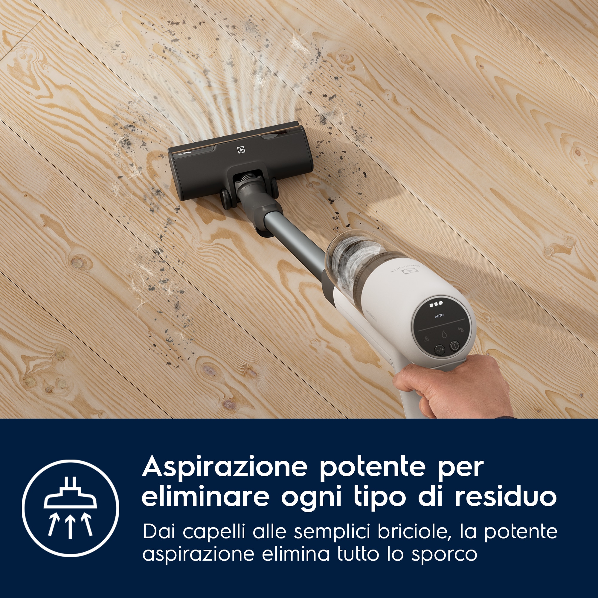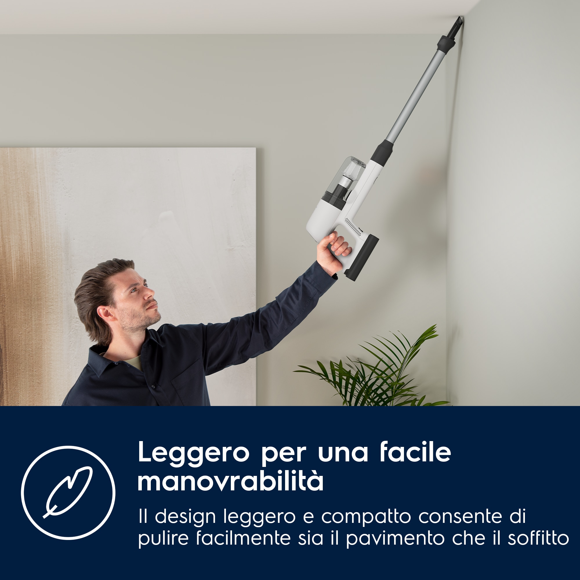 Questo aspirapolvere senza fili Electrolux è uno dei nostri aspirapolvere più efficienti che consente di risparmiare fino al 47% di energia* prolungando l'autonomia con la modalità automatica. L'aspirapolvere, la bocchetta principale e il supporto di ricarica sono realizzati con fino al 60% di plastica riciclata da tutte le plastiche utilizzate** La gamma di aspiratori senza filo Electrolux EcoLine è selezionata in base alla funzione Auto Mode che può aiutare i consumatori a risparmiare energia durante l'uso.