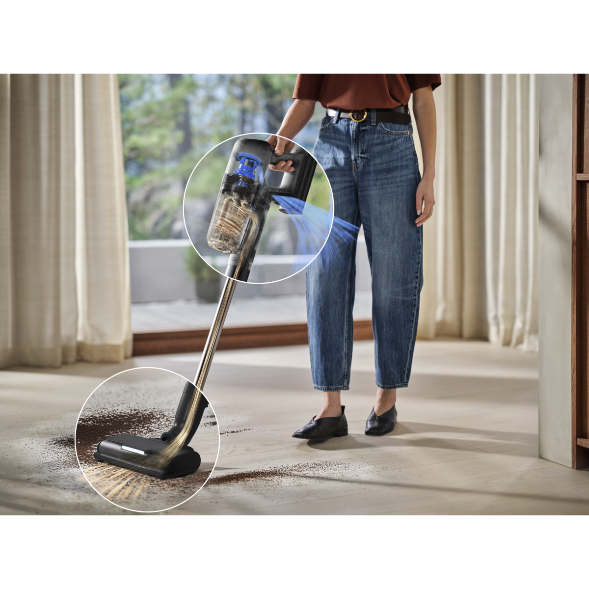 L'aspirapolvere senza fili Serie 700 combina prestazioni potenti e maneggevolezza con la versatilità di un aspirapolvere con lavaggio integrato. La bocchetta ActiveMop aggiuntiva facilita la pulizia di liquidi e macchie.