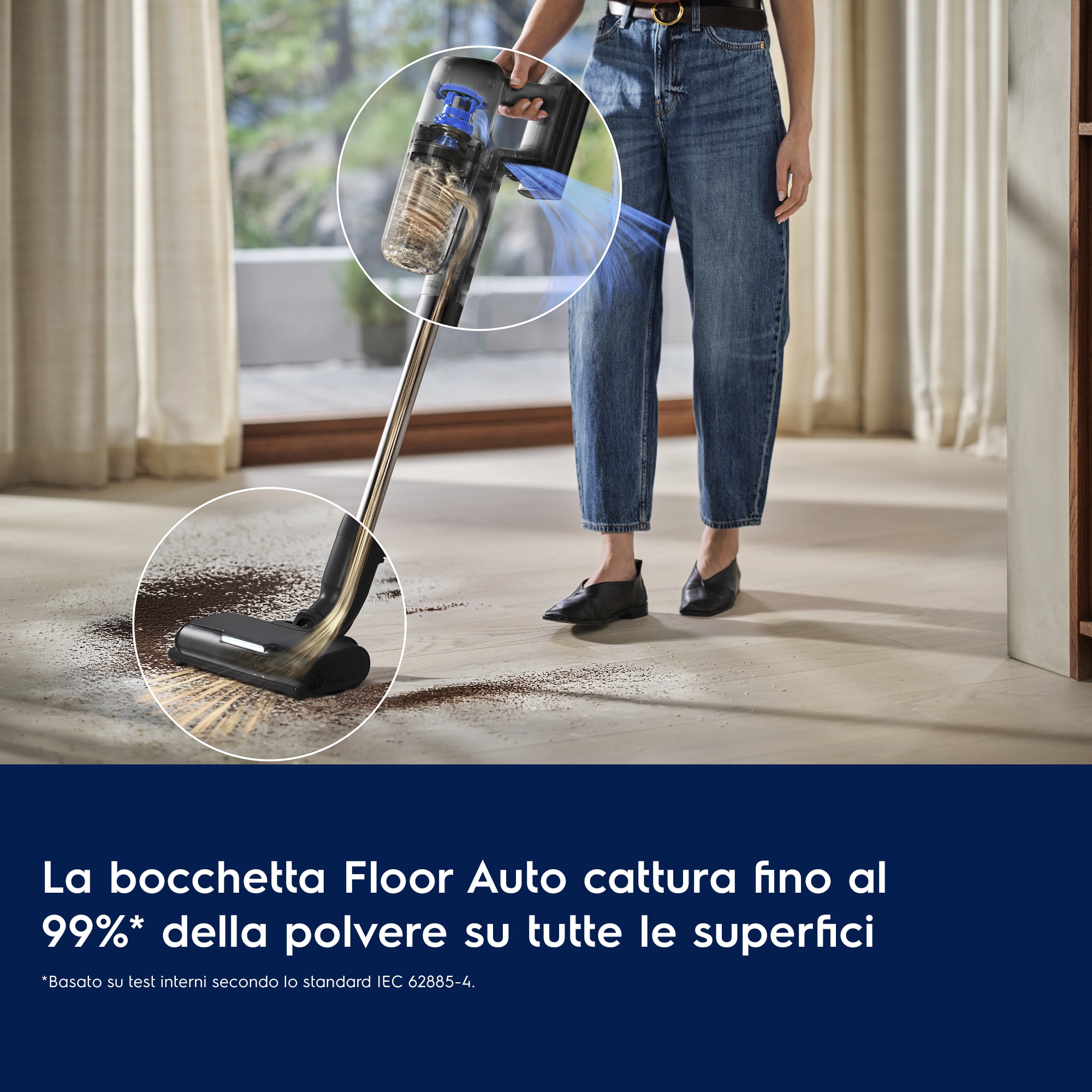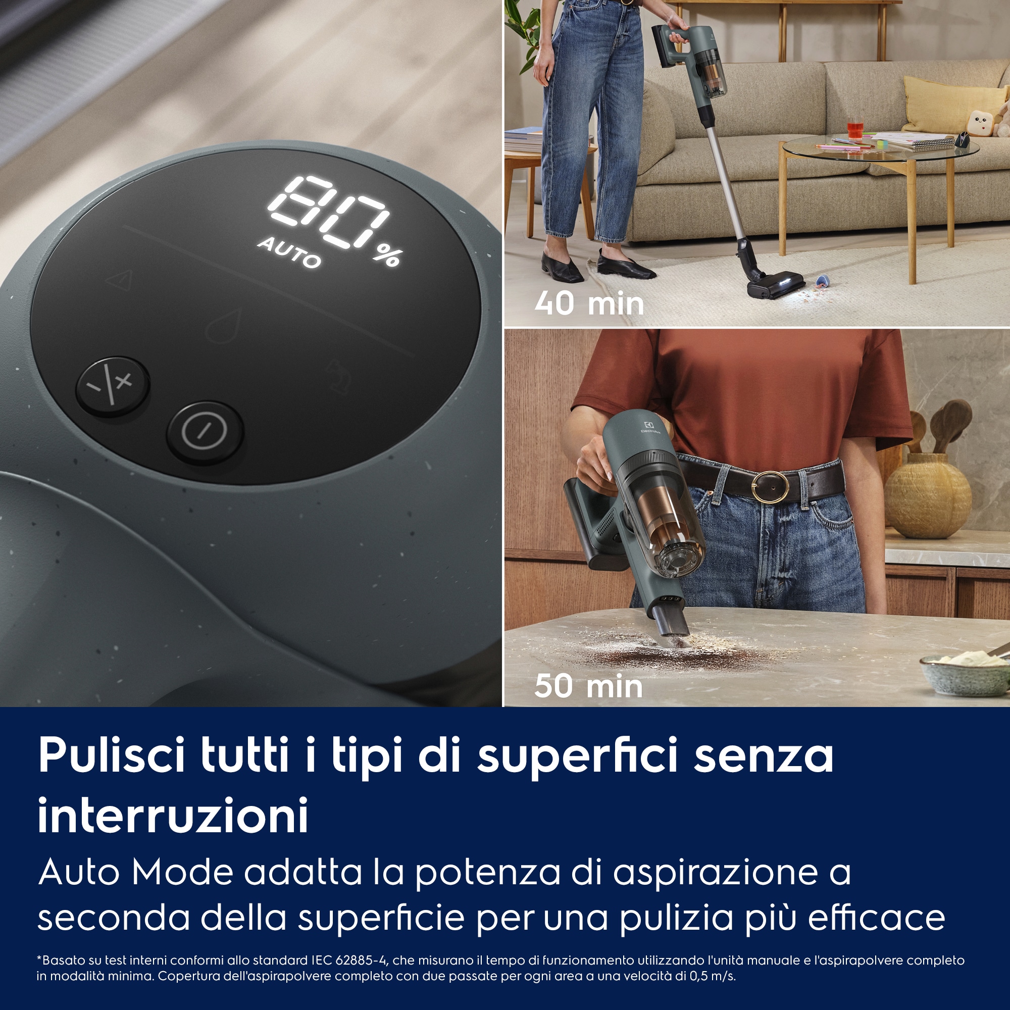 *In base a un test interno su pavimenti duri utilizzando la modalità Boost in conformità allo standard IEC 62885-4.