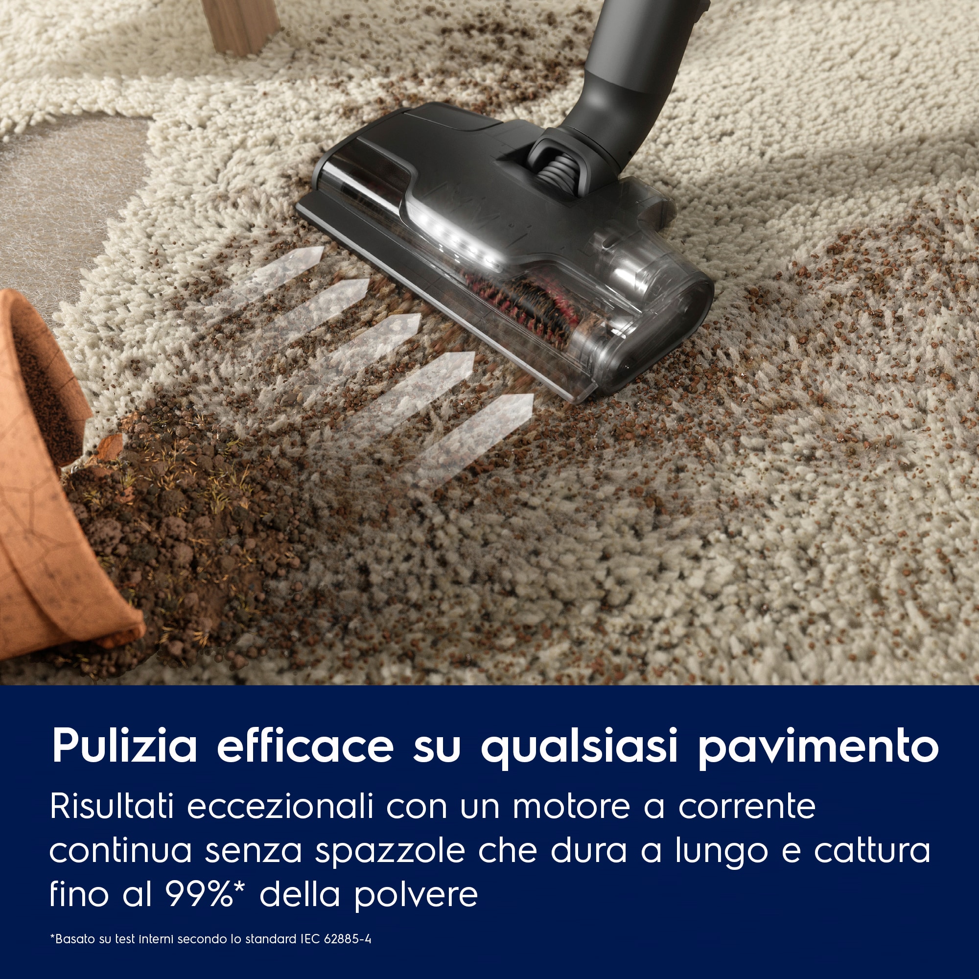 Questo aspirapolvere senza fili Electrolux è uno dei nostri aspirapolvere più efficienti che consente di risparmiare fino al 64% di energia* prolungando l'autonomia con la modalità automatica. L'aspirapolvere, la bocchetta principale e il supporto di ricarica sono realizzati con fino al 72% di plastica riciclata da tutte le plastiche utilizzate** La gamma di aspiratori senza filo Electrolux EcoLine è selezionata in base alla funzione Auto Mode che può aiutare i consumatori a risparmiare energia durante l'uso.