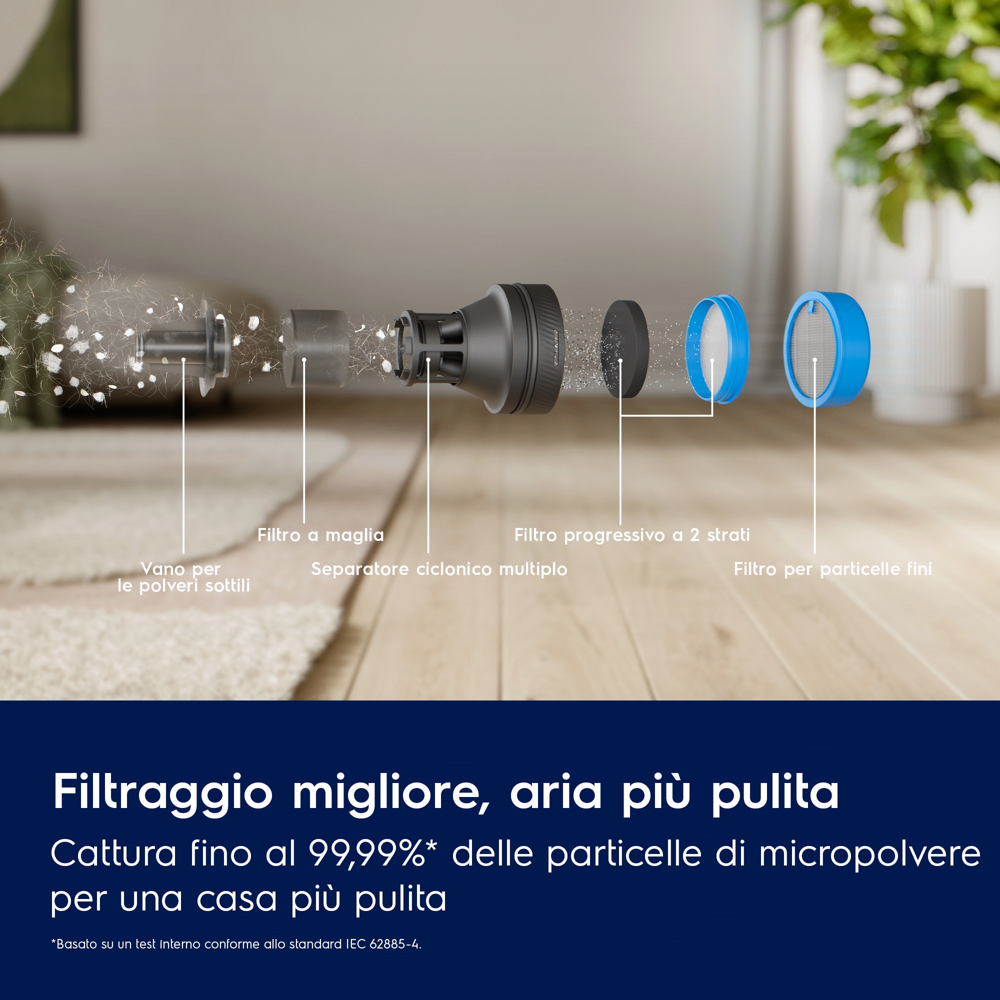 Il sistema di filtraggio a 6 strati cattura fino al 99,99%* delle particelle*