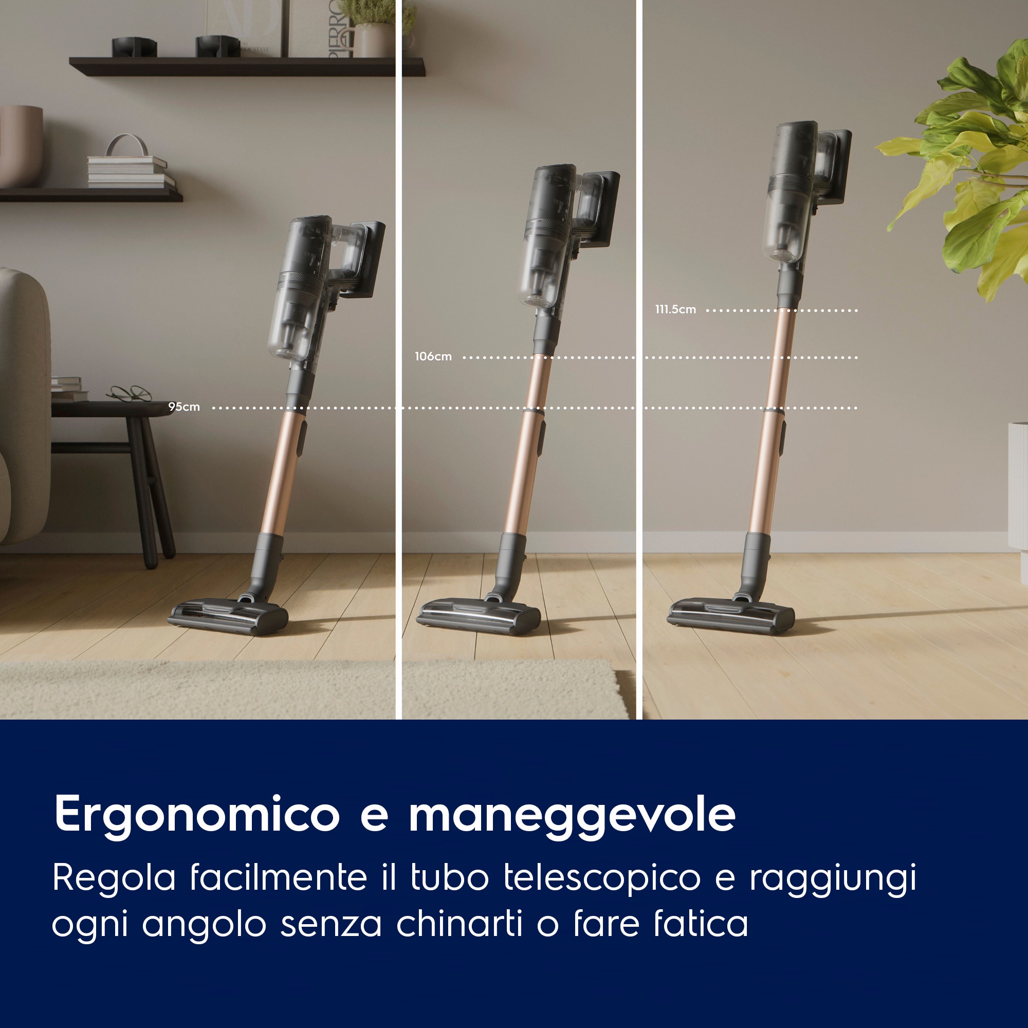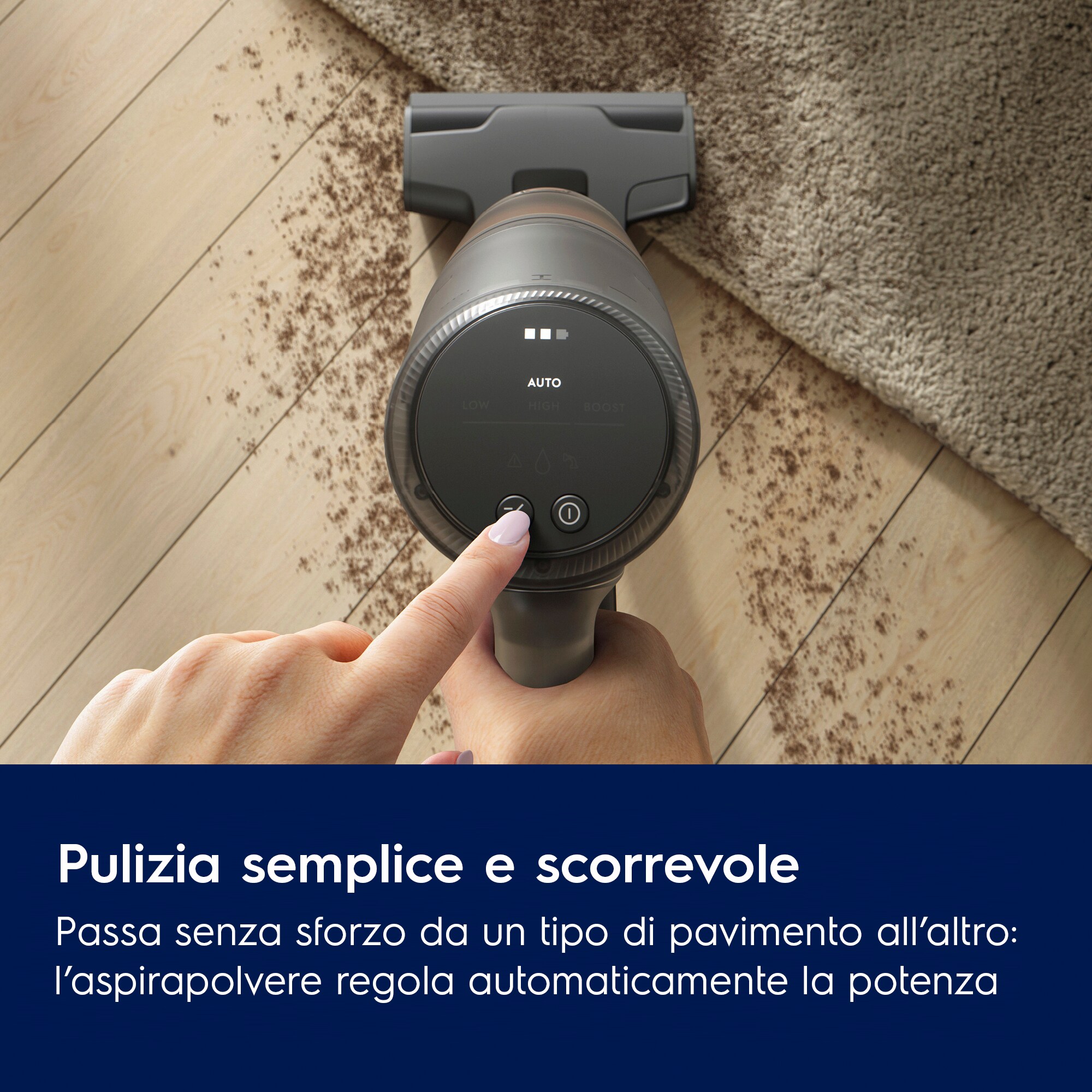 Questo aspirapolvere senza fili Electrolux è uno dei nostri aspirapolvere più efficienti che consente di risparmiare fino al 64% di energia* prolungando l'autonomia con la modalità automatica. L'aspirapolvere, la bocchetta principale e il supporto di ricarica sono realizzati con fino al 72% di plastica riciclata da tutte le plastiche utilizzate** La gamma di aspiratori senza filo Electrolux EcoLine è selezionata in base alla funzione Auto Mode che può aiutare i consumatori a risparmiare energia durante l'uso.