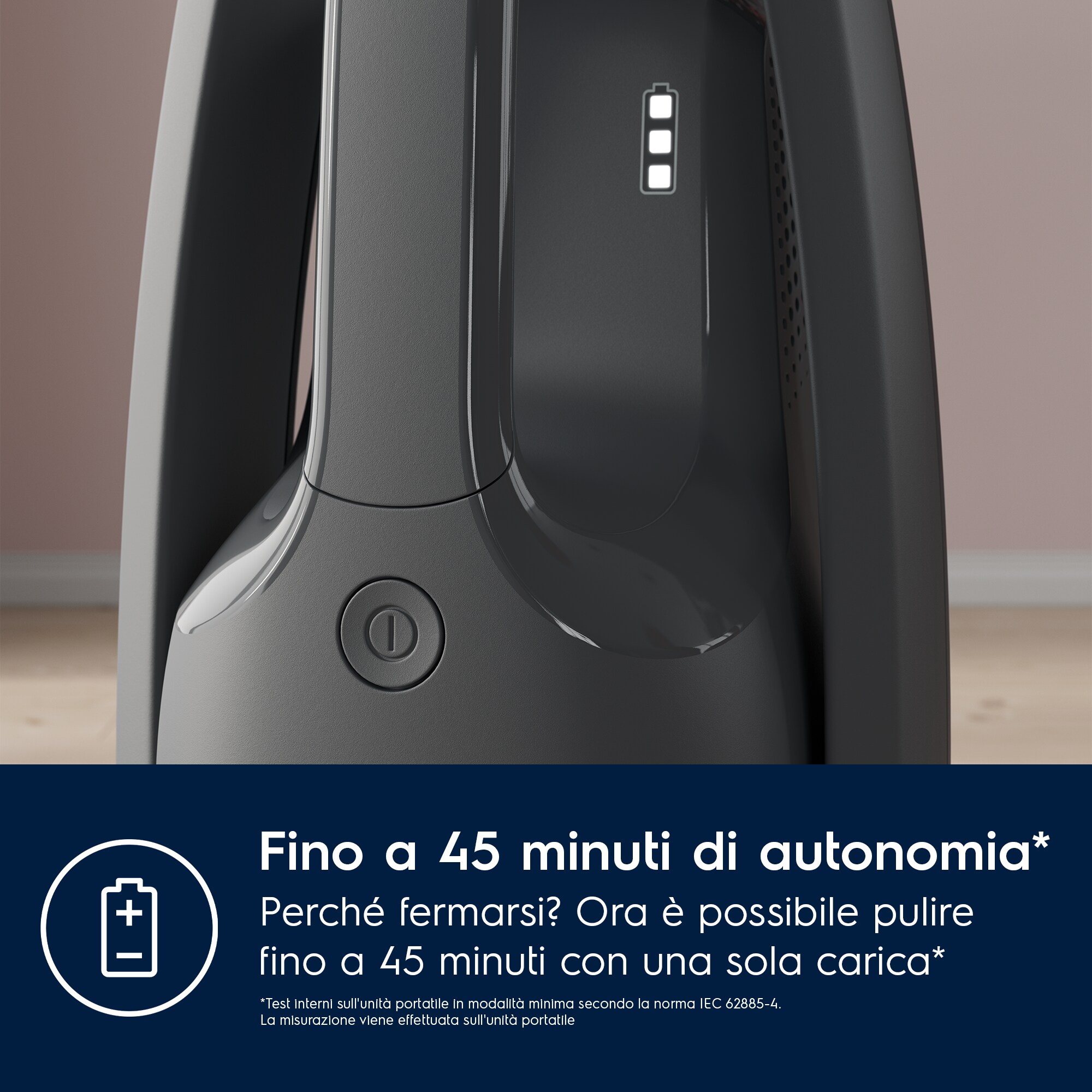 Fino a 45 minuti di funzionamento* per una pulizia comoda e senza interruzioni