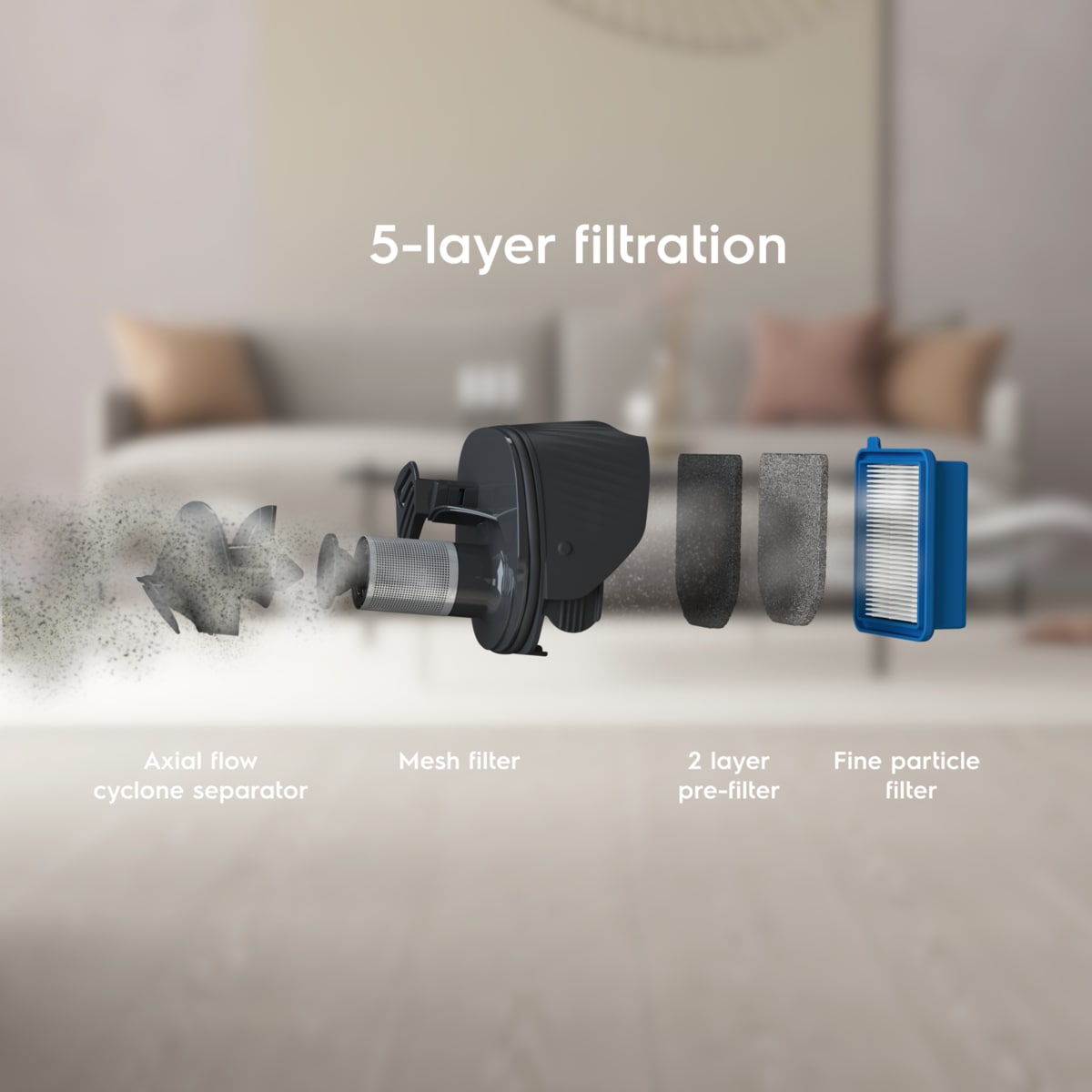 Filtraggio a 5 stadi per un’aria più pulita e una casa più sana mentre pulisci.