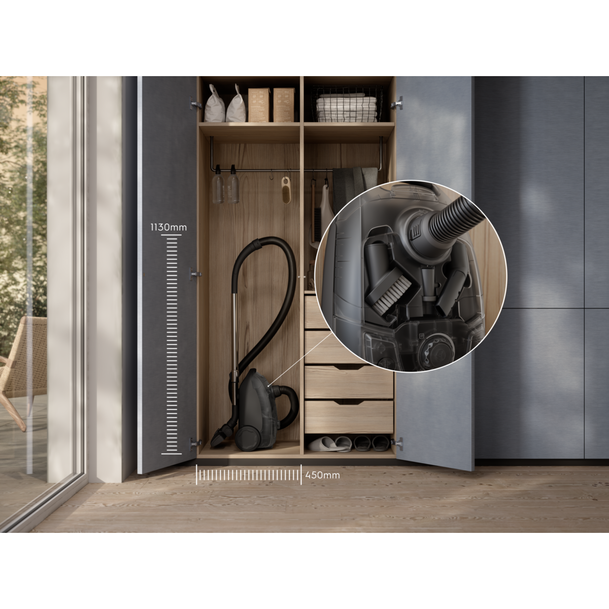 Il nostro aspirapolveree con sacco più potente, in grado di pulire polvere e sporcizia da tutte le superfici, con una sola passata. Il beccuccio AllFloor è adatto sia a pavimenti in legno che a tappeti, e tutti gli altri accessori sono comodamente riposti sull'asse