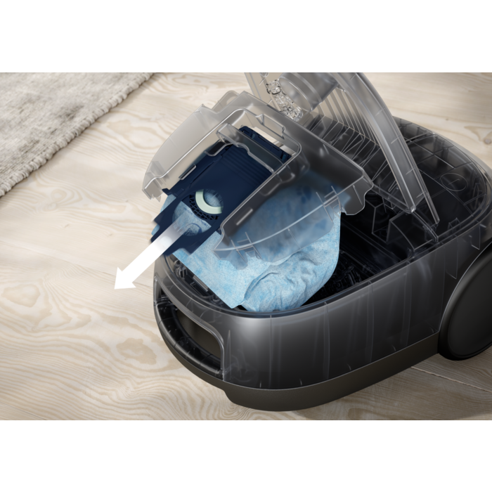 La modalità pavimento automatica sulla bocchetta dell’aspirapolvere con sacco Animal 600 si traduce in meno interruzioni per risultati visibili. Fornito con accessori ideali per rimuovere i peli degli animali domestici.