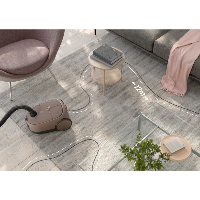 L’aspirapolvere con sacco Clean 600 combina la modalità pavimento automatica sulla bocchetta con un’accessibilità intuitiva per prestazioni senza compromessi e meno interruzioni.