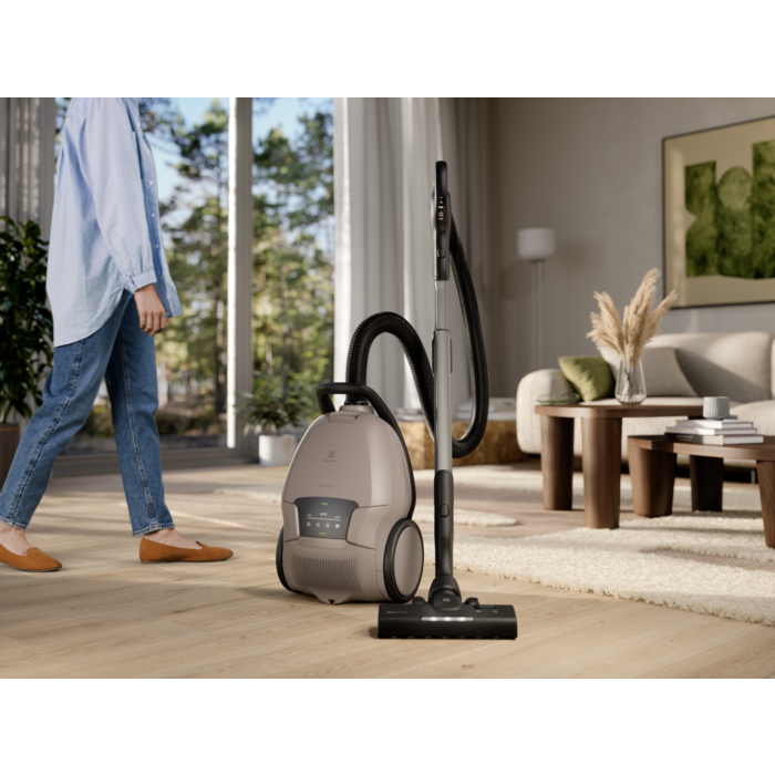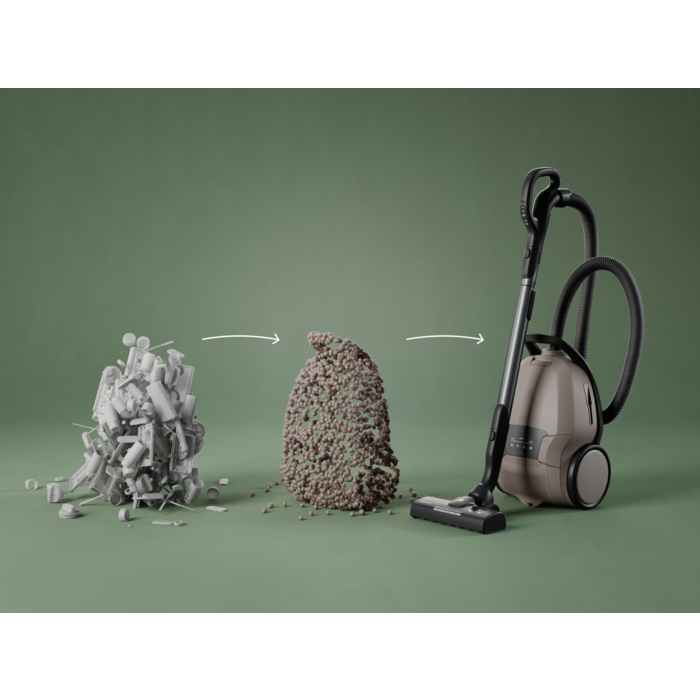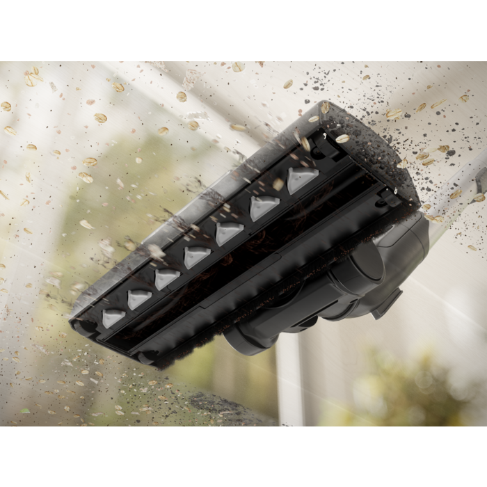 L'aspirapolvere ha una potenza di aspirazione potente e regolabile automaticamente ed è dotato di una nuova bocchetta a LED, di un display digitale e di accessori integrati. L'aspirapolvere e la sua bocchetta principale sono realizzati con il 48% di plastica riciclata*.