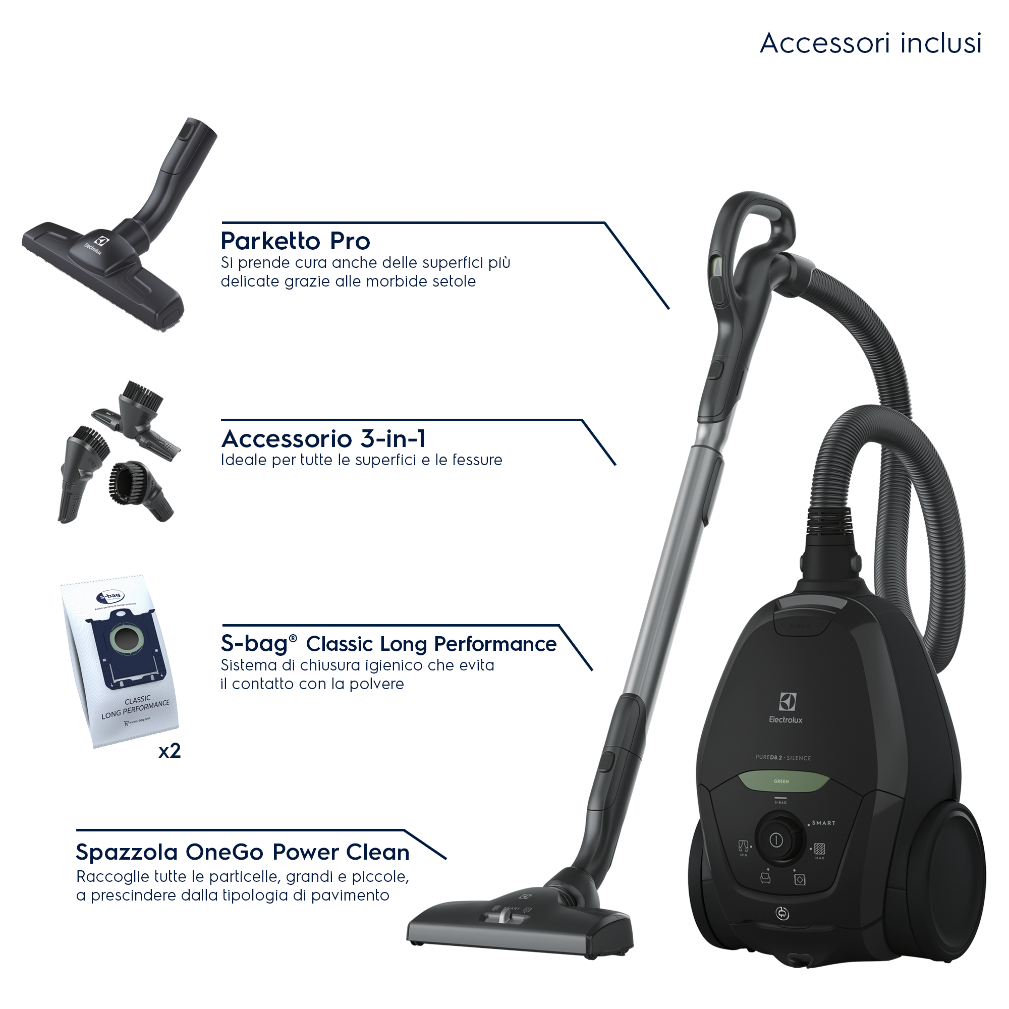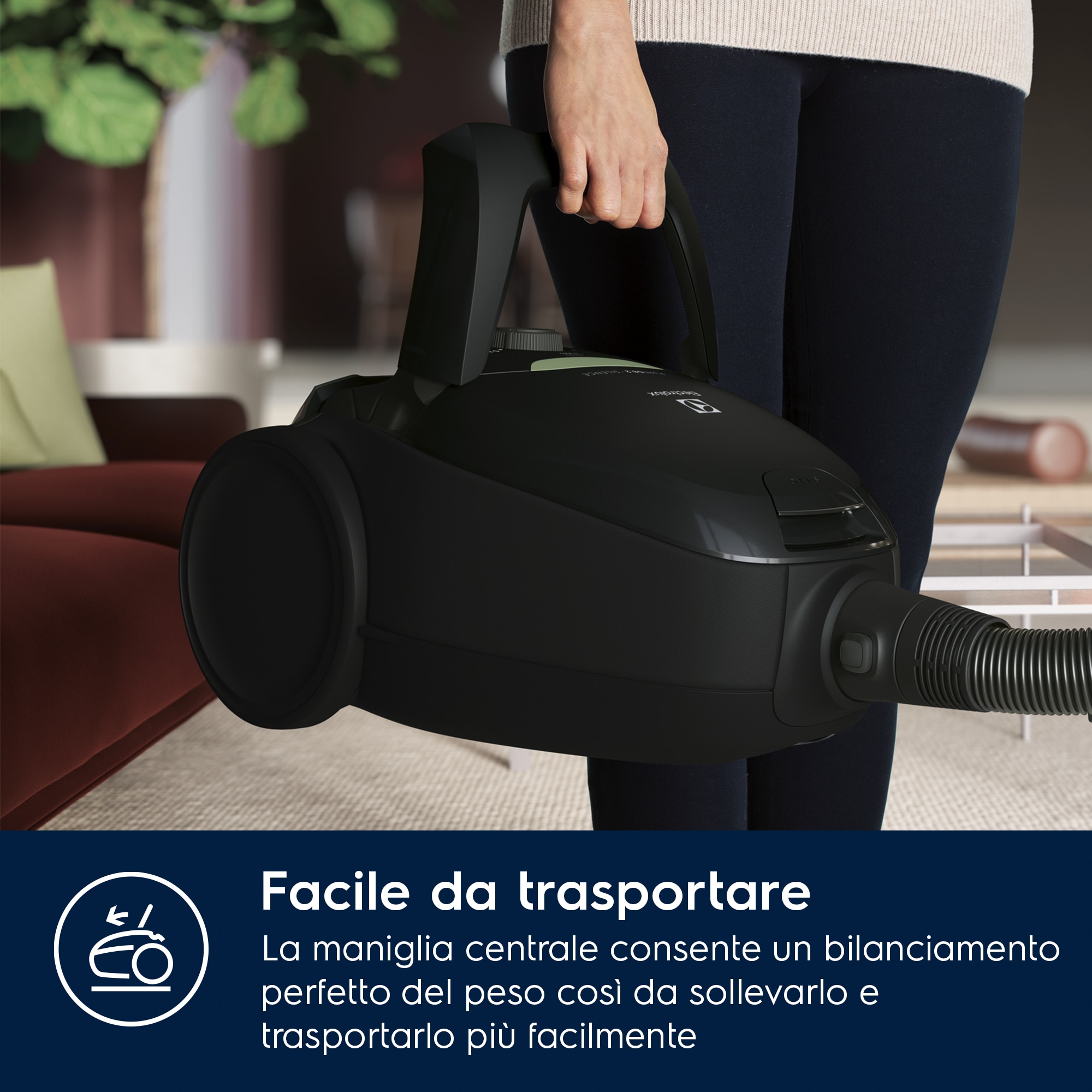 Questo aspirapolvere con filo Electrolux è uno dei nostri aspirapolvere più efficienti che consente di risparmiare fino al 52% di energia* con la modalità automatica. Scopri la garanzia di 10 anni del motore con la registrazione del prodotto.** L'aspirapolvere e la bocchetta principale di questo prodotto sono realizzati con fino al 75% di plastica riciclata da tutte le plastiche utilizzate.*** La gamma di detergenti con filo Electrolux EcoLine è selezionata in base a Auto Funzionalità di modalità che può aiutare i consumatori a risparmiare energia durante l'uso.