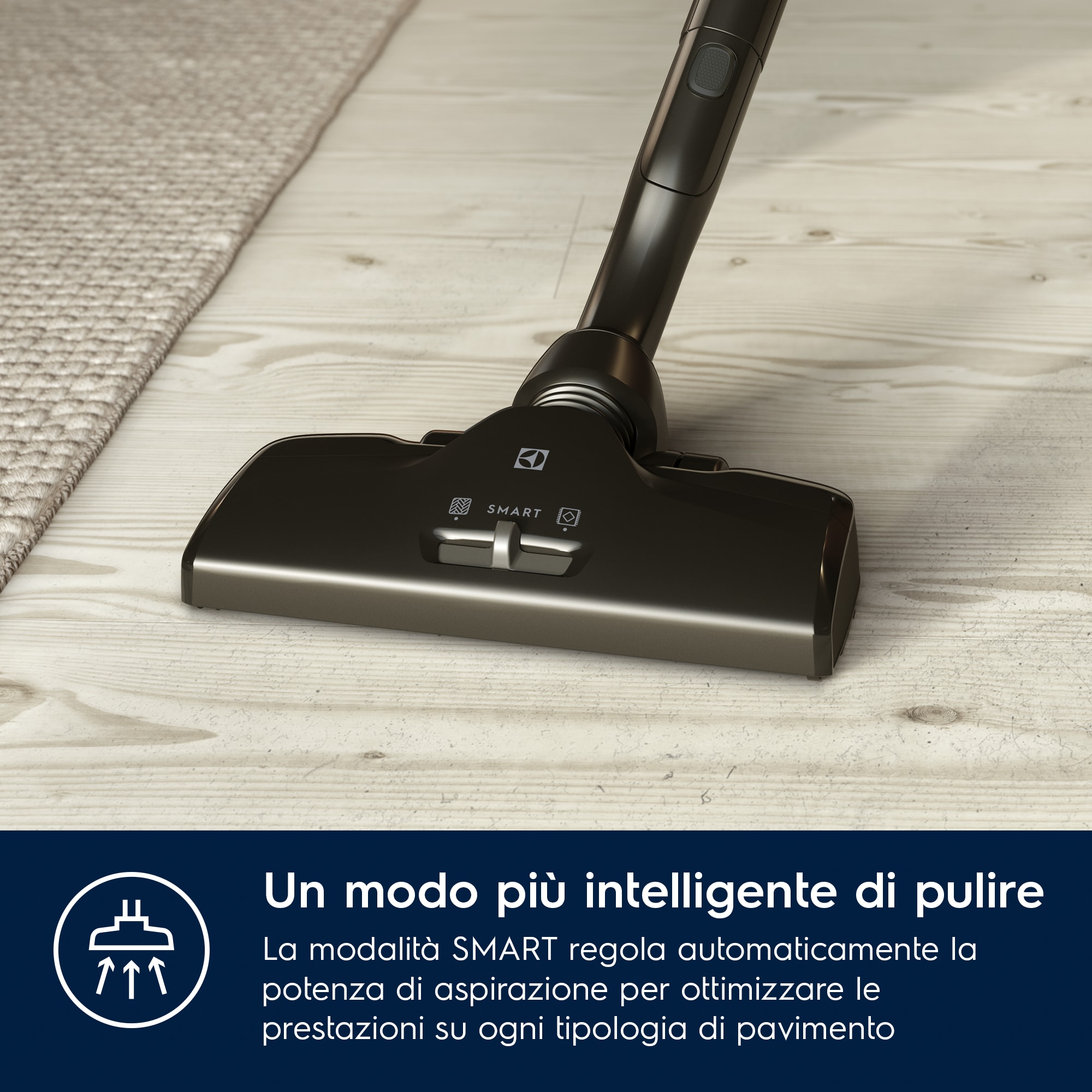 Tecnologia SmartMode. Regolazione automatica della potenza nel passaggio tra pavimenti e tappeti