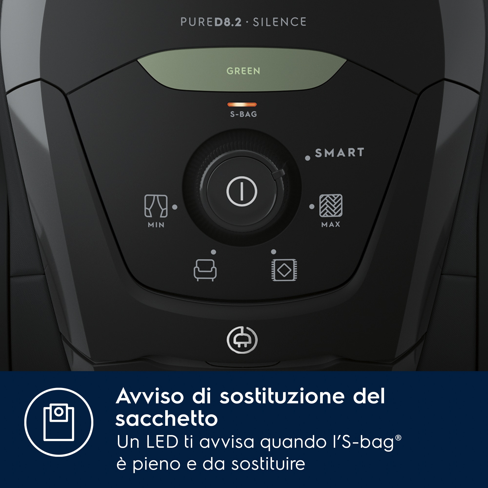 Aspirapolvere con sacco Pure D8 GREEN Nero