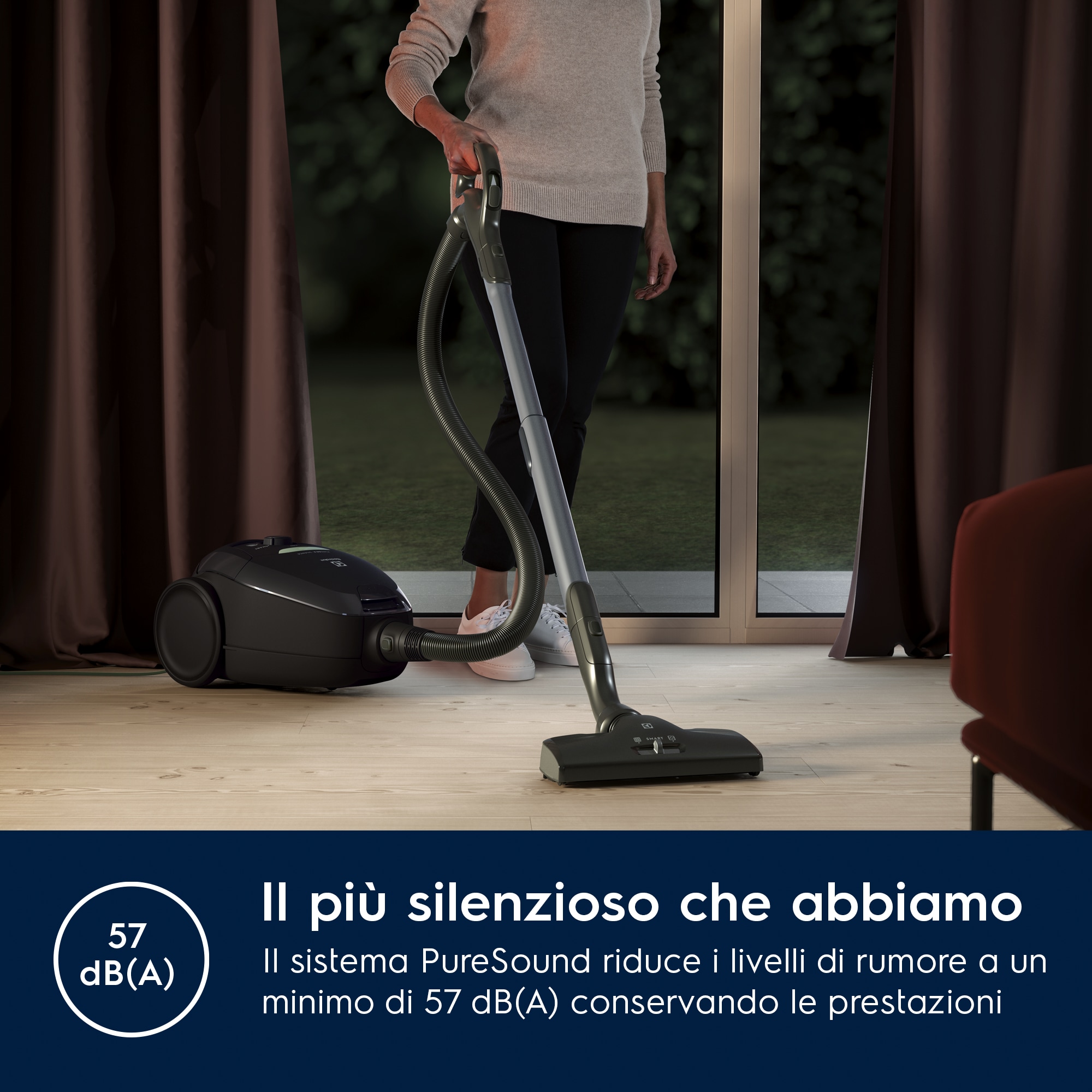 Sistema PureSound. 57 dB(A) di silenziosità straordinaria su tutti i pavimenti. *